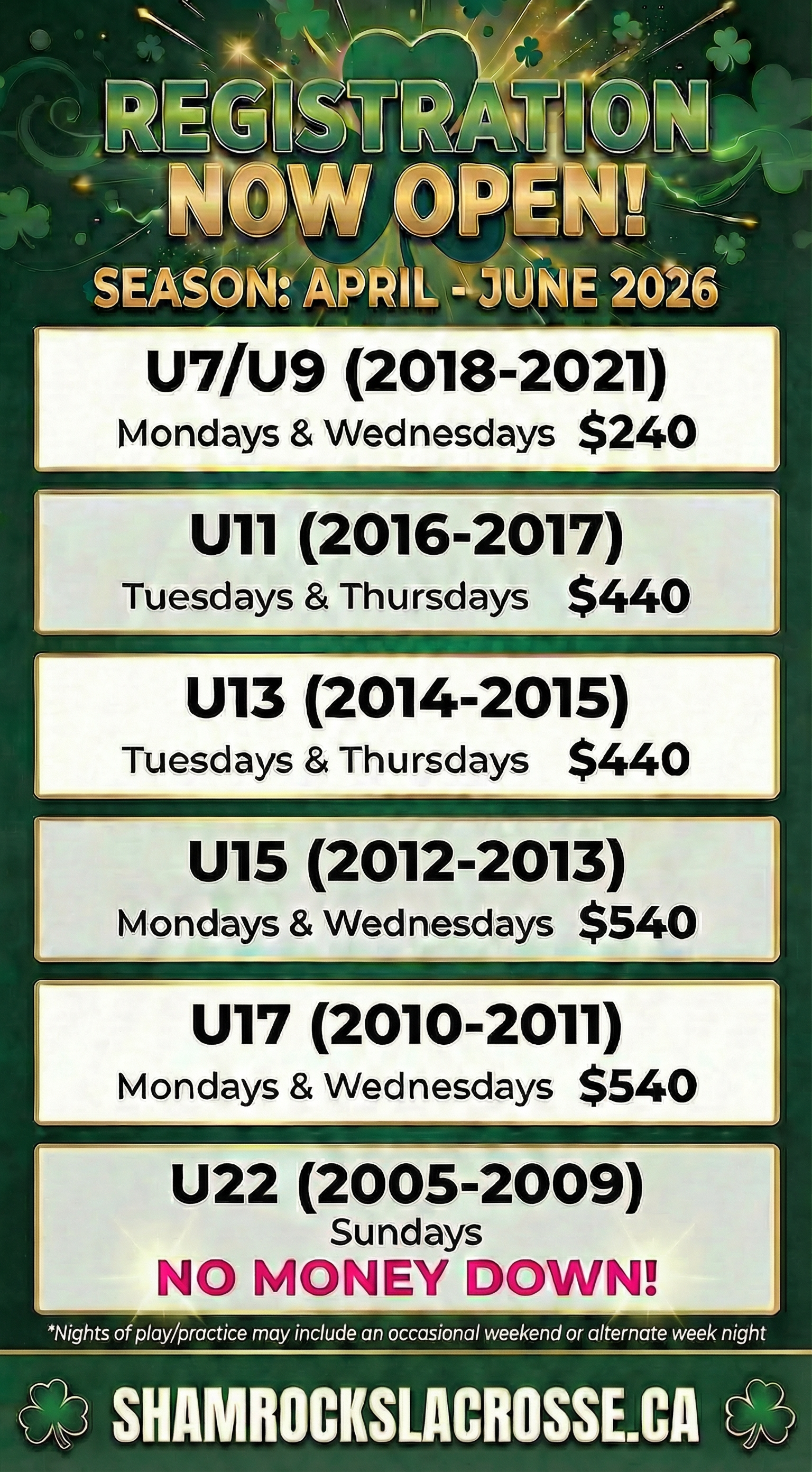 SHAMROCKS SHAKE DOWN U17 'B' TOURNAMENT Details Coming Soon!